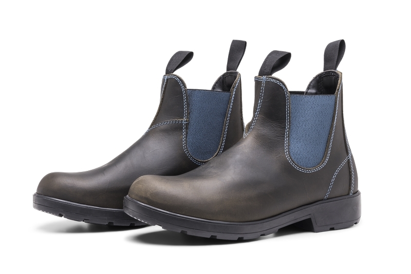 Lækker klassisk Chelsea Boot i Vintage grå læder med Jeans blå elastik. Fremstillet i Italien.