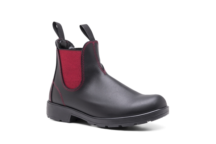 Lækker klassisk Chelsea Boot i sort læder med rød elastik, som er fremstillet i Italien.