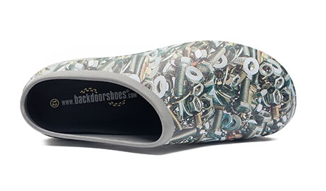 Clogs-stilen og materialet gør at skoen er meget holdbar og yder dine fødder en høj komfort. Det lette fodtøj du let hopper i og ud af når du ige skal ud med affaldet, skal i haven eller et hurtigt smut i byen. Ud af navnet "Backdoor Shoes" tænkt som en sko du har stående ved terasse eller bryggersdøren, og grundet den lukkede overdel, modsat de fleste lignende Clogs, har du en tæt sko der ikke giver dig våde fødder når du f.eks. går igennem det høje dugfriske græs.
