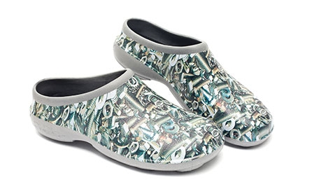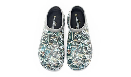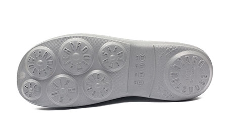 Skoene er lavet af en letvægts skum (EVA) og indeholder ikke gummi. EVA er valgt da det har en stor holdbarhed samt god stødabsorbering som yder god komfort. EVA er desuden et super let produkt, så her har vi en sko som nærmest ingenting vejer.