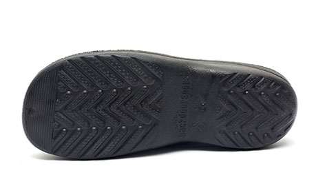 Skoene er lavet af en letvægts skum (EVA) og indeholder ikke gummi. EVA er valgt da det har en stor holdbarhed samt god stødabsorbering som yder god komfort. EVA er desuden et super let produkt, så her har vi en sko som nærmest ingenting vejer.